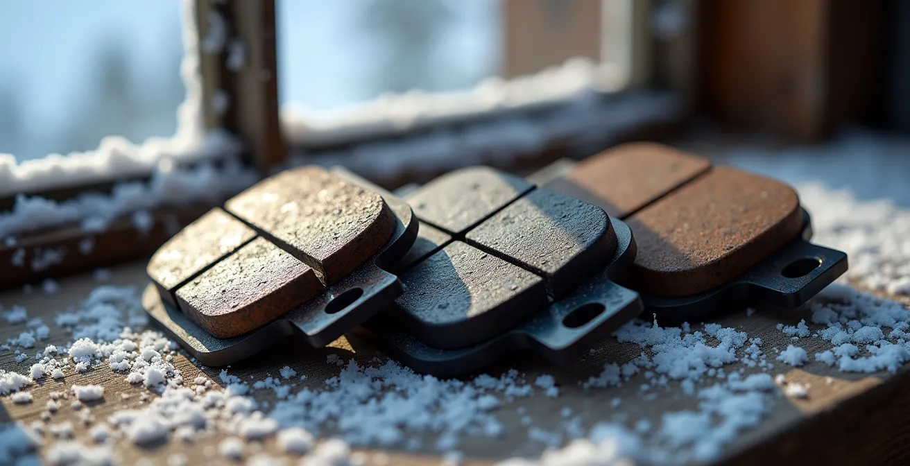 La discussione si concentra spesso sulla sterile comparazione tra la modulabilità delle pastiglie organiche e la durata di quelle metalliche. Ma questo approccio ignora il fattore più importante: il punto di rottura. Ogni mescola ha un tallone d’Achille che le condizioni alpine invernali sono maestre nello scovare. Può essere una vetrificazione dovuta al surriscaldamento su una discesa ghiacciata, un’usura accelerata che consuma una pastiglia nuova in una singola uscita fangosa, o una contaminazione accidentale che rende l’impianto inutilizzabile. La chiave non è trovare la pastiglia “migliore” in assoluto, ma quella la cui debolezza è meno esposta dal nostro stile di guida e dai nostri percorsi.